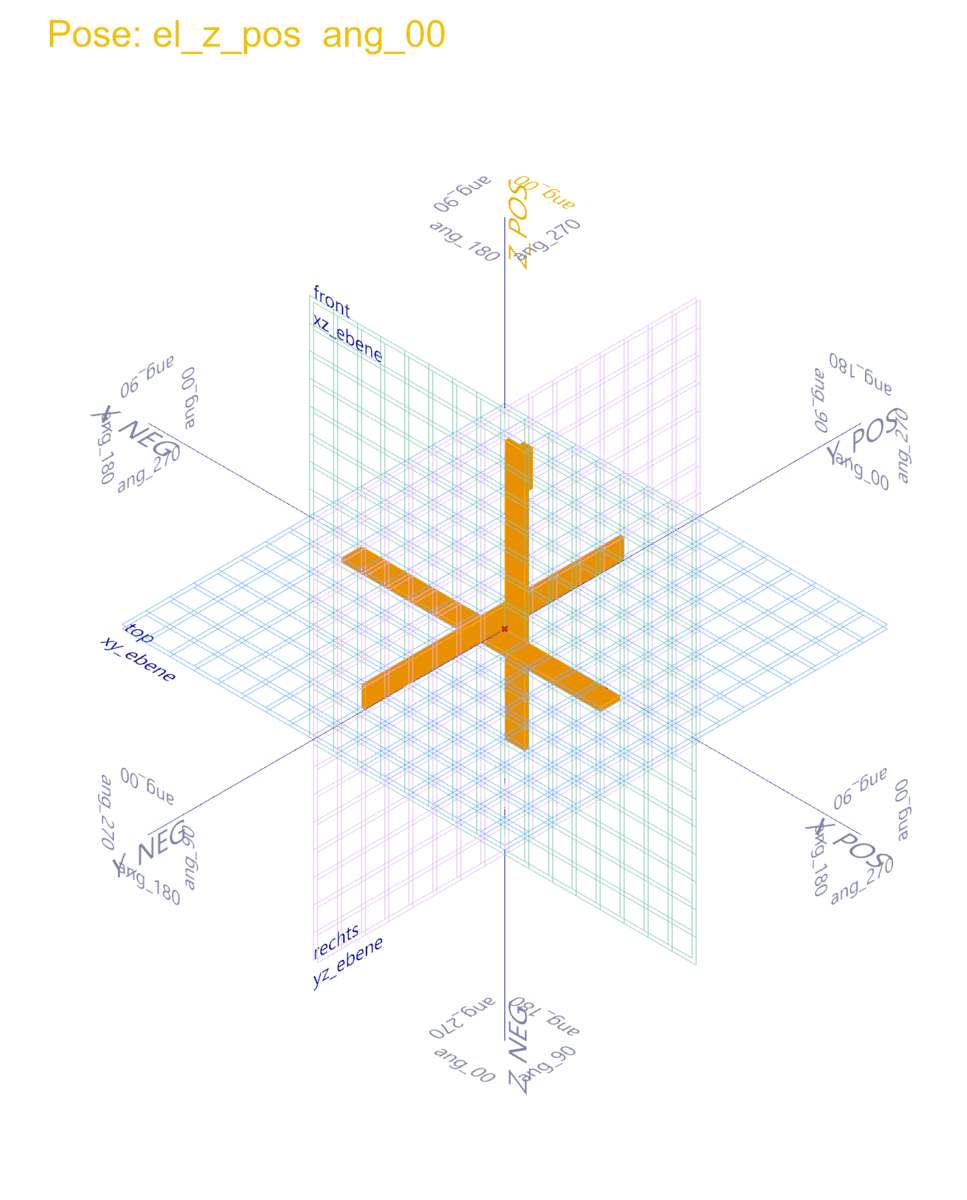 Ein Knoten besteht aus drei gleichen Brettern welche versetzt zueinender verbunden werden. Somit ergeben sich 24 mögliche Positionen des Elementes im Raum