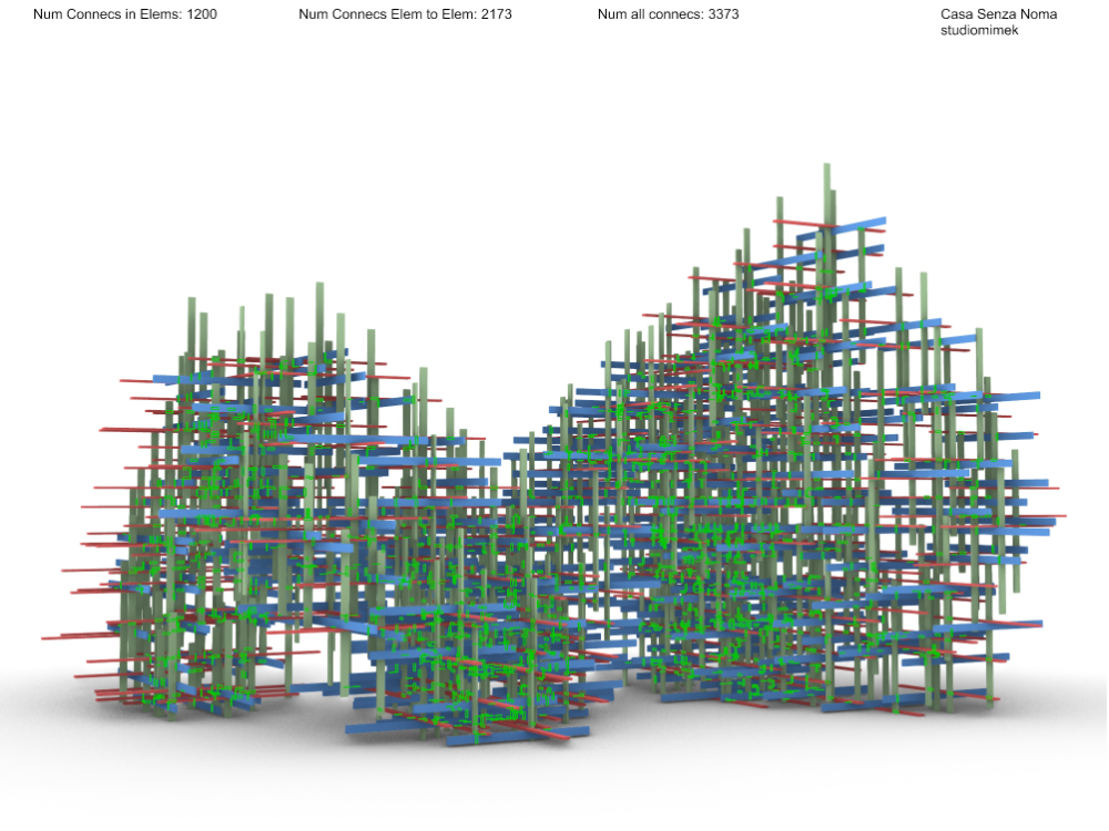 Parametrische Programmierung des Algorithmus in Rhino/Grasshopper und Python. 1200 Bretter,400 Elemente, 3373 Verbindungen, 61Varianten, über 1200 3d Dateien, 1200 Seiten pdf print Anleitungen