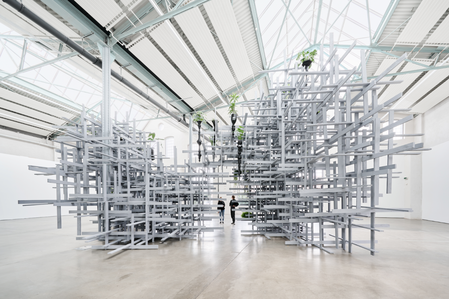 Zusammenarbeit mit Christian Odzuck. Eine raumgreifende Installation für die Kunsthalle Lingen. Parametrische Programmierung des Algorithmus in Rhino/Grasshopper und Python. 1200 Bretter,400 Elemente, 3373 Verbindungen, 61Varianten, über 1200 3d Dateien, 1200 Seiten pdf print Anleitungen