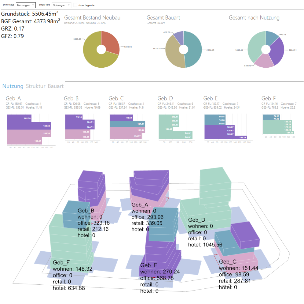 Vereinfachung von Entwurfsprozessen, direkte Sichtbarmachung der Projektkennzahlen während des Entwerfens. Analyse des Entwurfs. Optimieren der Entwürfe durch direktes Datenfeedback. Finden der optimalen Lösung und Kompetente Entscheidungsfindung.