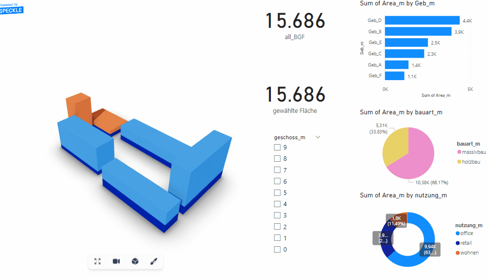 Interaktives, frei gestaltbares Dashboard, in Power-BI. Visualisierung der Daten in 3d und in charts. Das Modell kann nach Filtern/Parametern live untersucht und diese Informationen gezielt dargestellt werden.